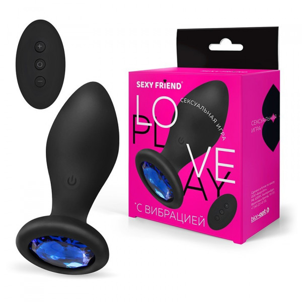 Пробка c синим кристаллом "Sexy Friend" на дистанционном управлении, черная, M