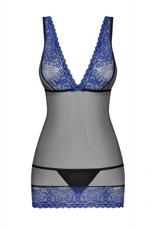 Пеньюар черный с синим кружевом "Obsessive" S/M