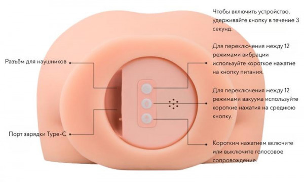 Мастурбатор имеет 12 разнообразных режимов вибрации, 12 режимов вакуума и голосовое сопровождение!